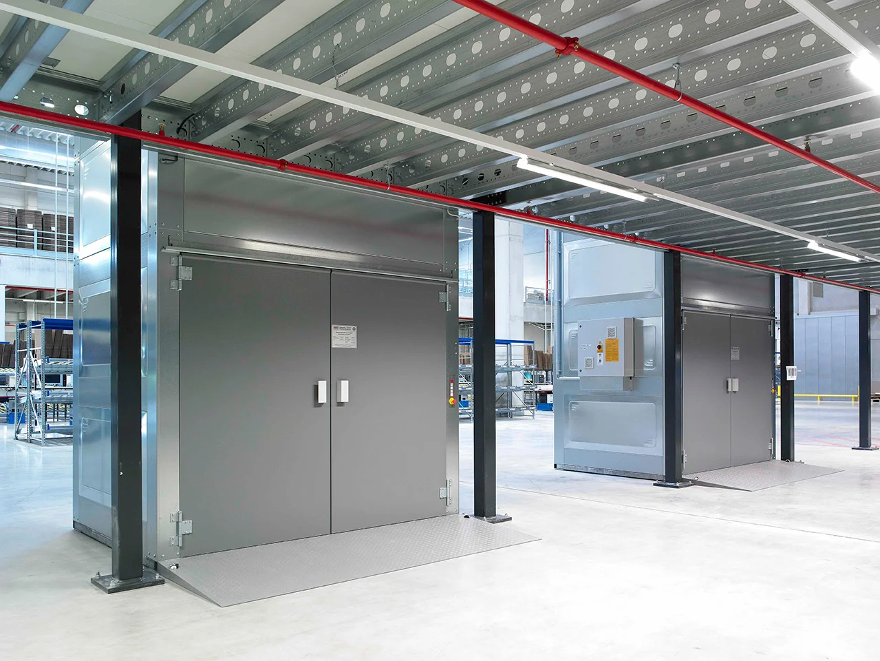 - De lift wordt geleverd als een vrijstaande constructie. Daardoor kon hij eenvoudig geïntegreerd worden in reeds bestaande magazijnen en kon de installatie snel worden uitgevoerd.