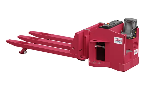 The Lödige Cargo Pallet Mover is a maneuverable, battery-powered transport vehicle for ULD Support Pallets carrying ULDs up to 15 ft and 7,500 kg. Three wide forks allow precise pick-up at system heights of 203 mm and 508 mm. With electric power steering and a robust lift mechanism, it ensures safe transfer between landside interface, build & break zones, storage positions, and the airside interface.