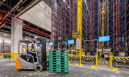 The crane operates in standard indoor warehouse conditions. Temperature-controlled consignment storage is possible with integration into separate cold storage solutions.