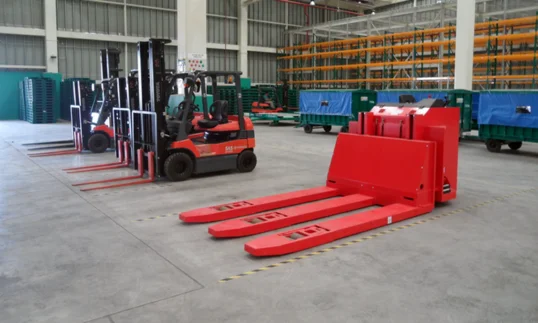 Lödige ULD Support Pallets are designed to hold ULDs (up to 6,800 kg) safely at standardised system heights of 203 mm or 508 mm. Each pallet ensures IATA-compliant four-sided access and includes fixed side guides for proper ULD alignment. The Cargo Pallet Mover is used to lift and move these pallets safely within the terminal.